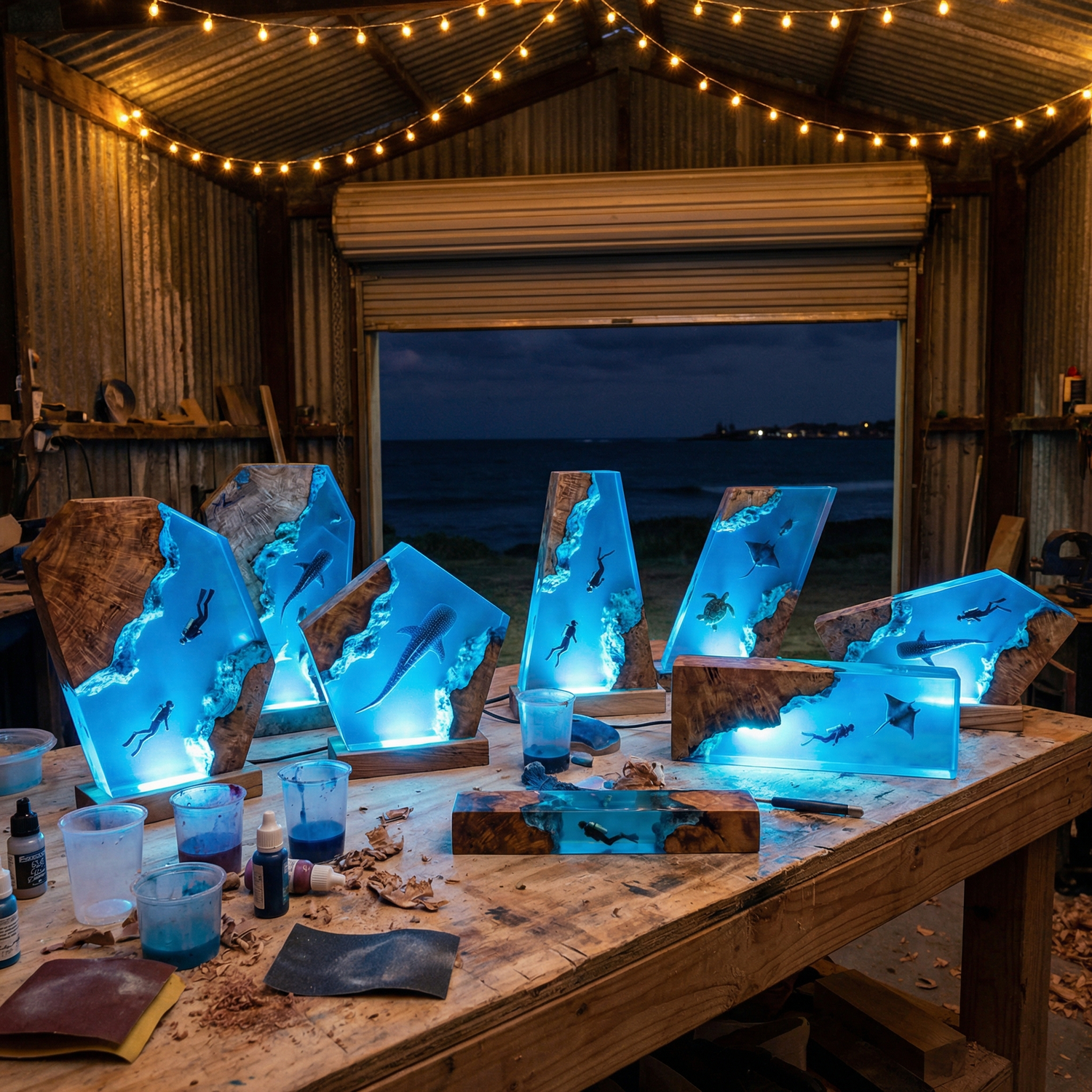 Designed to capture the depth, movement, and light of the ocean, each lamp is handcrafted to feel like a real piece of the sea. From curling waves to glowing depths, every detail is carefully shaped and suspended in crystal-clear resin to create a piece that feels coastal, calming, and completely unique.